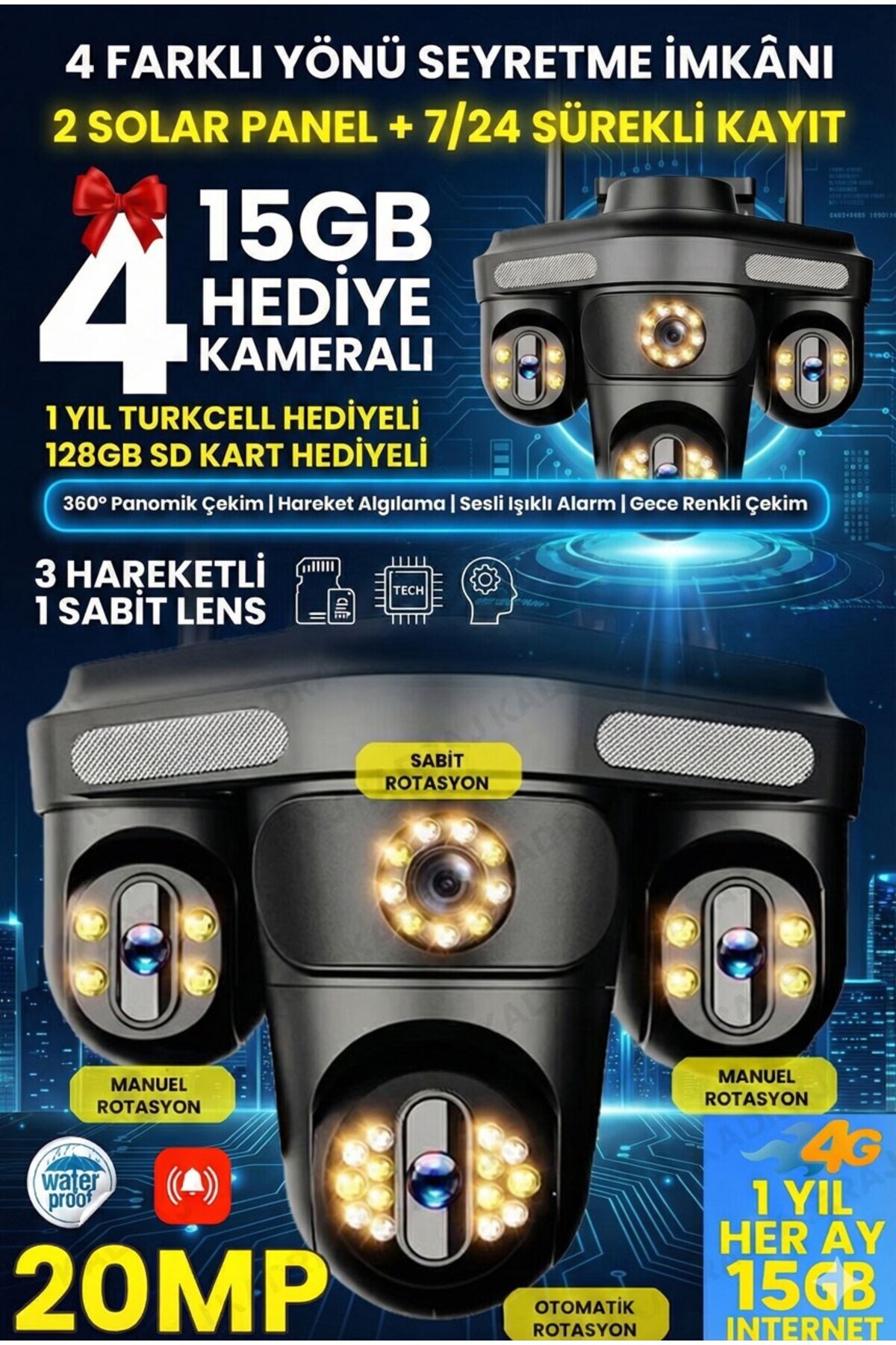 İnanılmaz Hediye Paketi! Bu ürünü aldığınızda sadece bir kamera değil, 1 yıllık internet ihtiyacınızı da karşılıyoruz! Tam 1 yıl boyunca, her ay yenilenen 15GB Turkcell internet hattı ve 128GB SD kart bizden hediye!