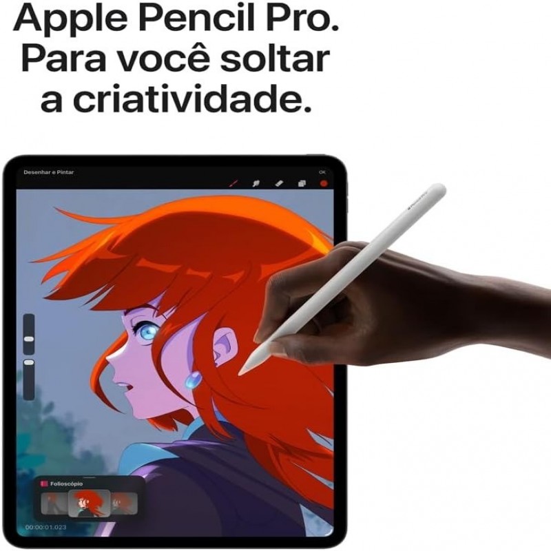 APPLE PENCIL E MAGIC KEYBOARD PARA IPAD PRO — O Apple Pencil Pro e Apple Pencil (USB‑C) permitem um controlo preciso e intuitivo para desenhar, criar e tirar notas. O Magic Keyboard inclui um trackpad com feedback tátil e permite escrever de forma cómoda.