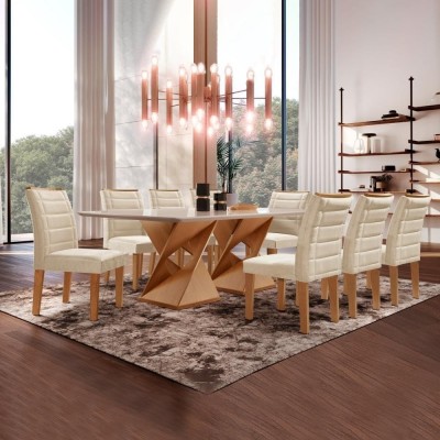 Mesas são indispensáveis para o funcionamento da casa e é no cômodo de confraternização que elas ganham protagonismo. Composto por peças de muito charme, o Conjunto Genova torna o uso desse móvel importante com 8 cadeiras para garantir uma usabilidade plena para o seu dia a dia. Ideal para cozinhas e salas de jantar, o kit oferece amplo espaço para que você possa dispor pratos, copos, talheres e até uma travessa com o quitute da vez, enquanto acomoda os convidados com aconchego e receptividade. Ah, para completar, é só combiná-la com o restante da mobília de sua preferência e criar o ambiente intimista perfeito para a sua rotina ou reuniões entre amigos.