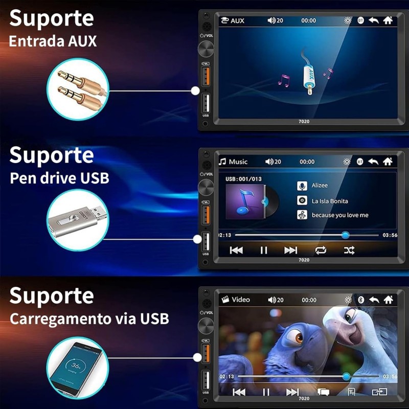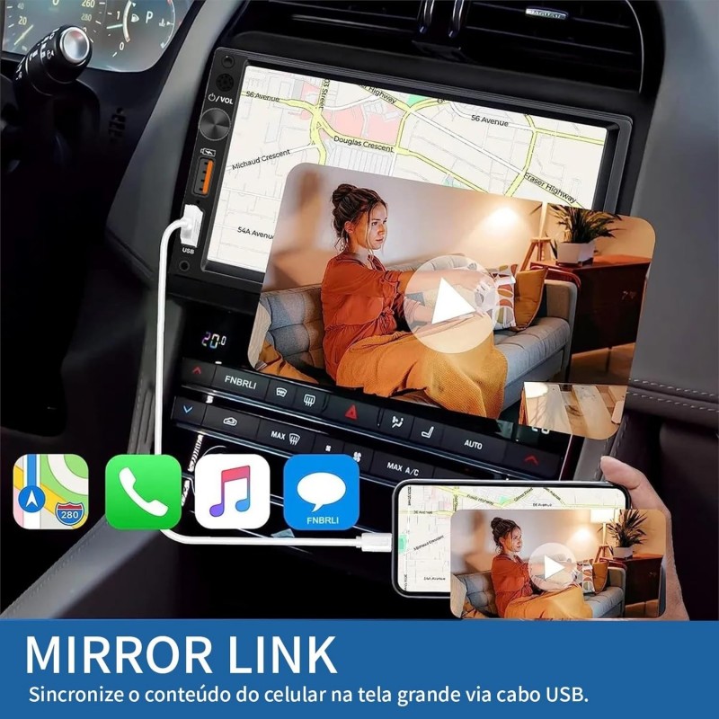 - Navegação Inteligente: Use Google Maps diretamente na tela com atualizações em tempo real. - Praticidade: Dual USB para carregar e reproduzir músicas simultaneamente.