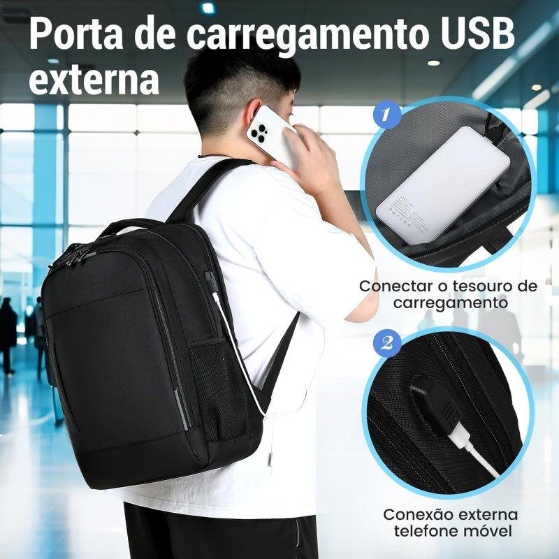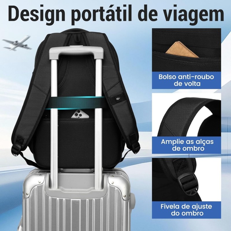 3.Mochila Multifuncional Anti-roubo; Há um bolso com zíper na parte de trás da bolsa, que pode conter objetos de valor, como telefones celulares e iPads, o que é antifurto e conveniente. Mochila multifuncional: Híbrida (mochila, mochila para laptop, mochila de viagem). Pode ser servido como mochila diária, mochila profissional para laptop ou uso diário em qualquer lugar para fins de semana, escapadela casual.