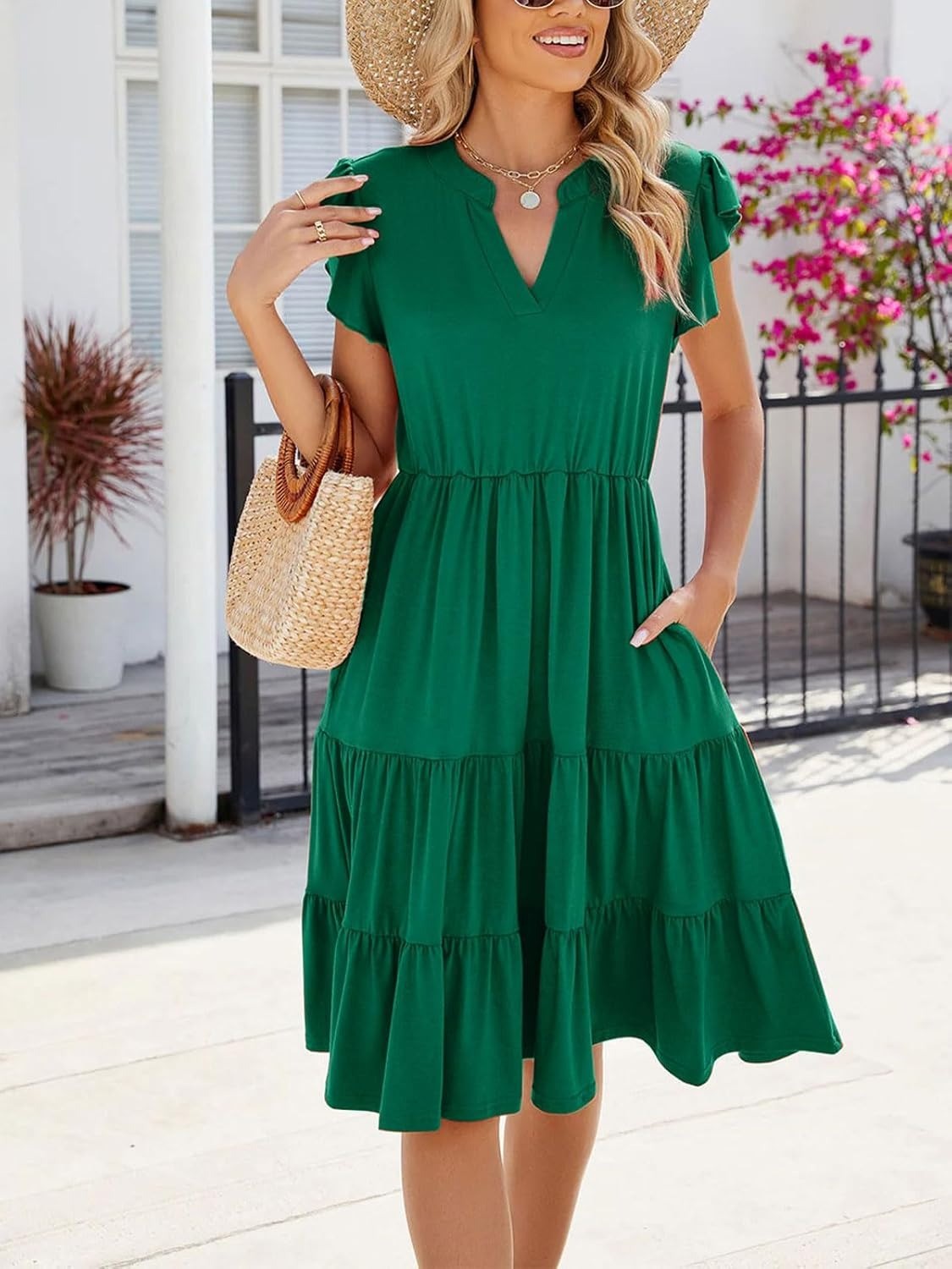 Vestido maxi feminino casual de verão com babados e manga curta 2025 primavera gola V rodado vestidos de praia boho